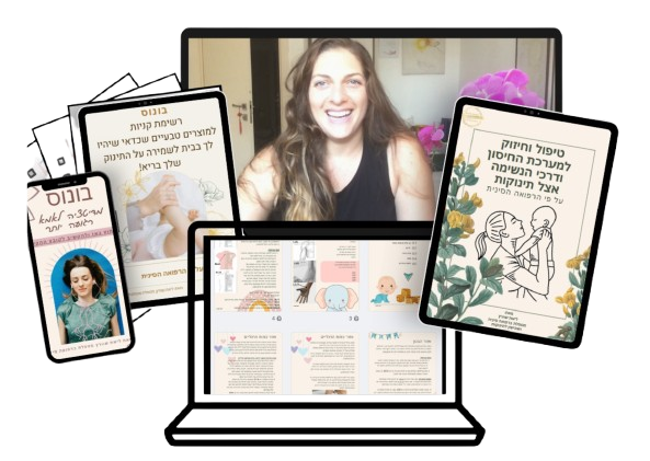 • חוברת דיגיטלית עם הסברים מדוייקים שתוכלי לקרוא בזמן הטיפול כשאת מבצעת על תינוקך.